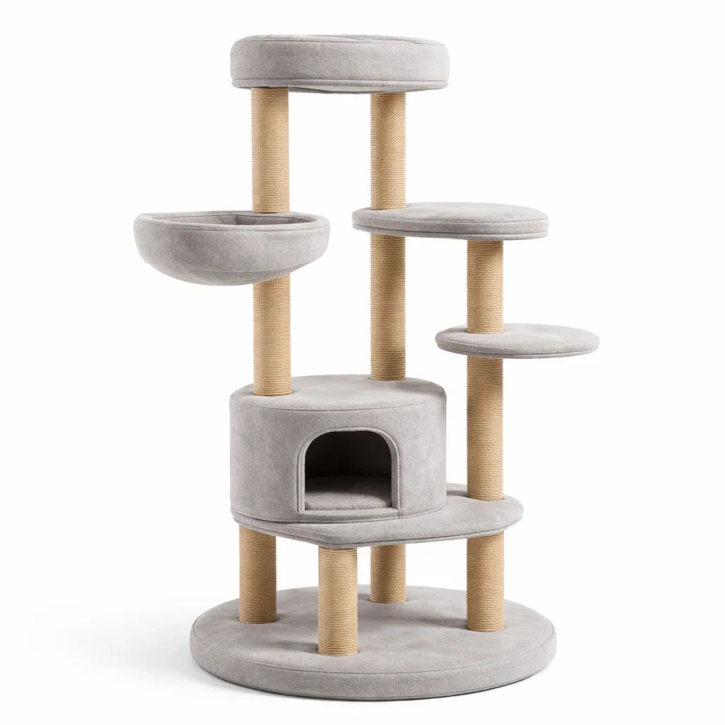Arbre à chat en bois et sisal gris avec 4 plateformes 60x45x120 cm