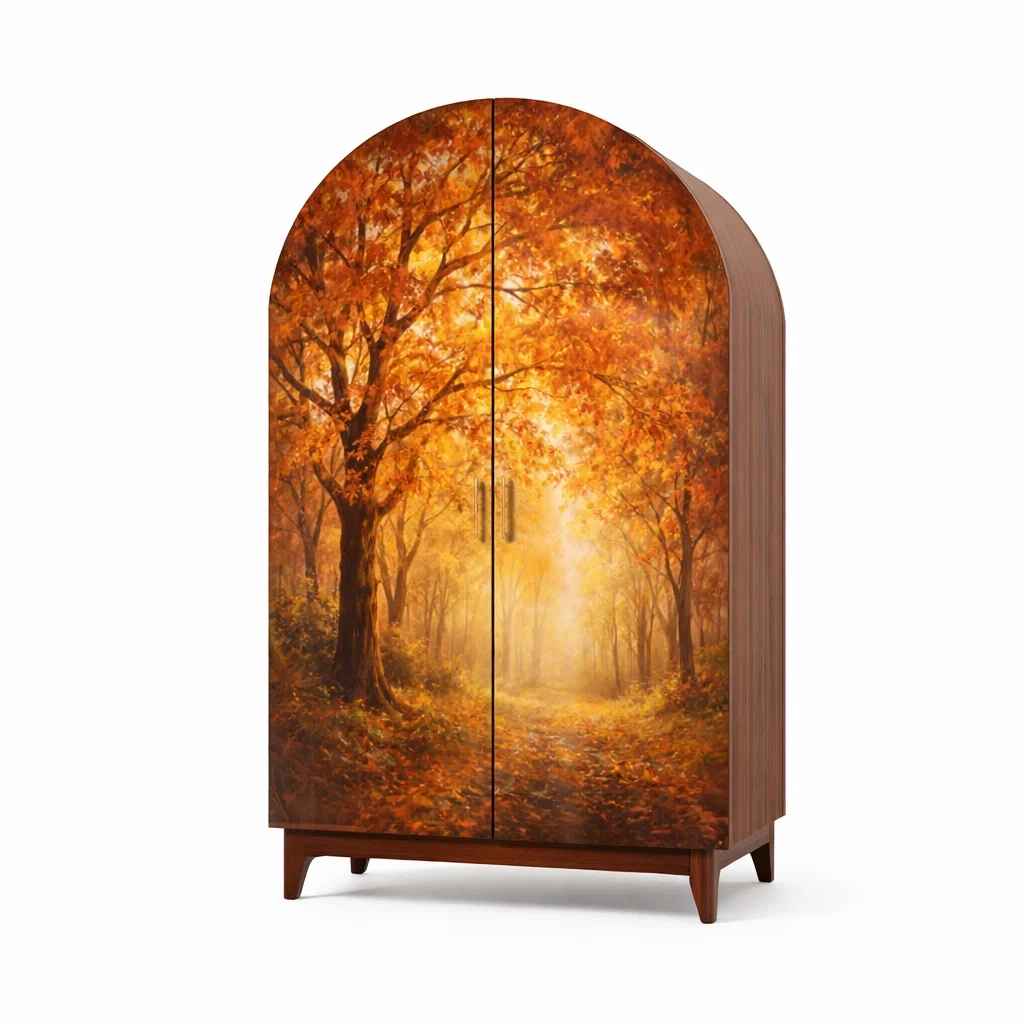 Armoire en bois à 2 portes avec impression forêt automnale