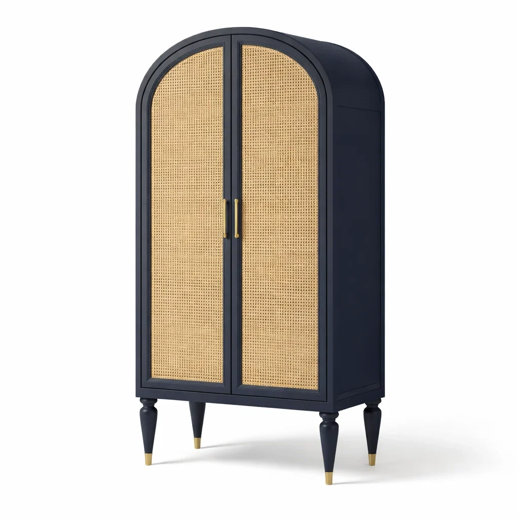 Armoire en bois avec portes en rotin noir 180x90x40 cm