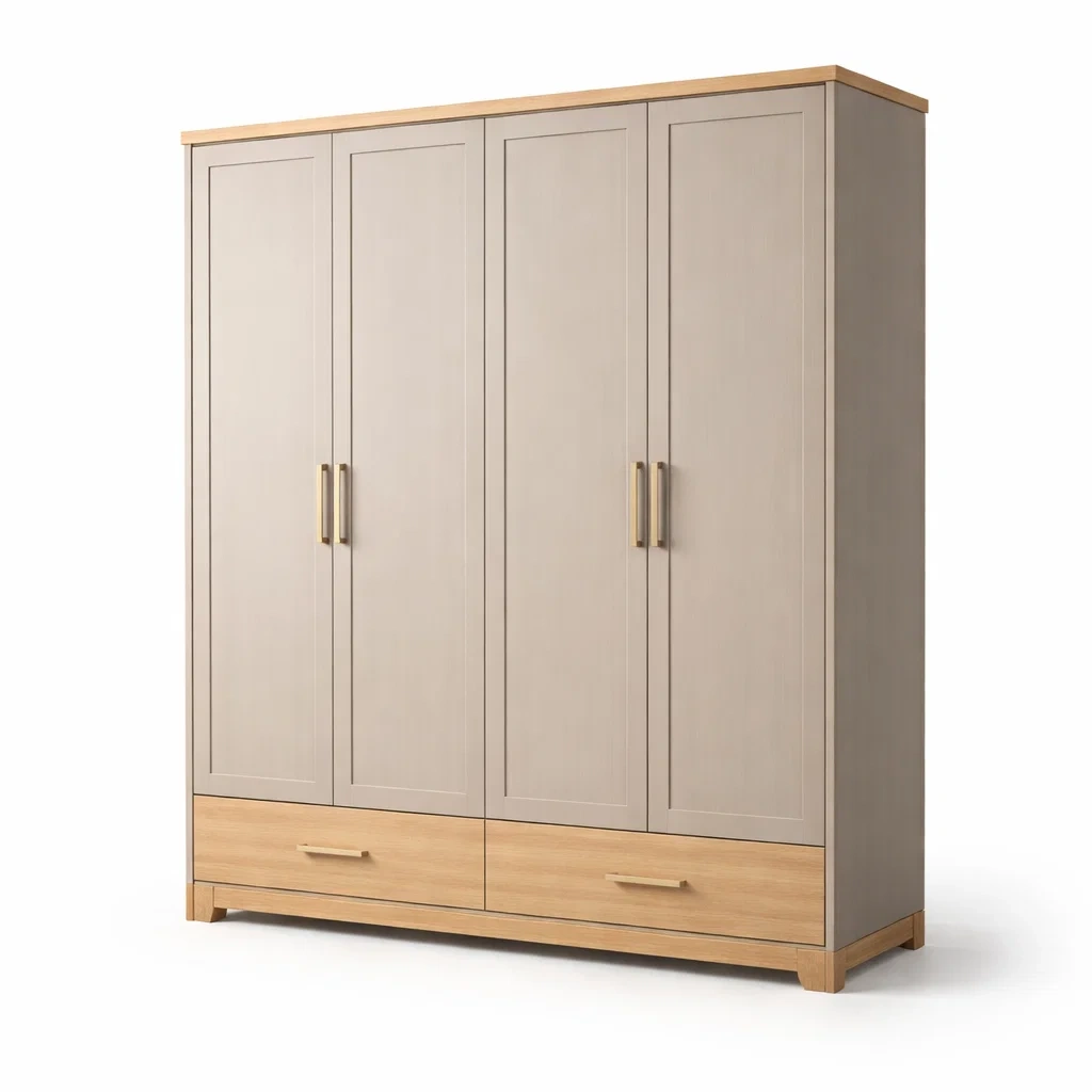 Armoire en mdf beige avec 4 portes et tiroirs