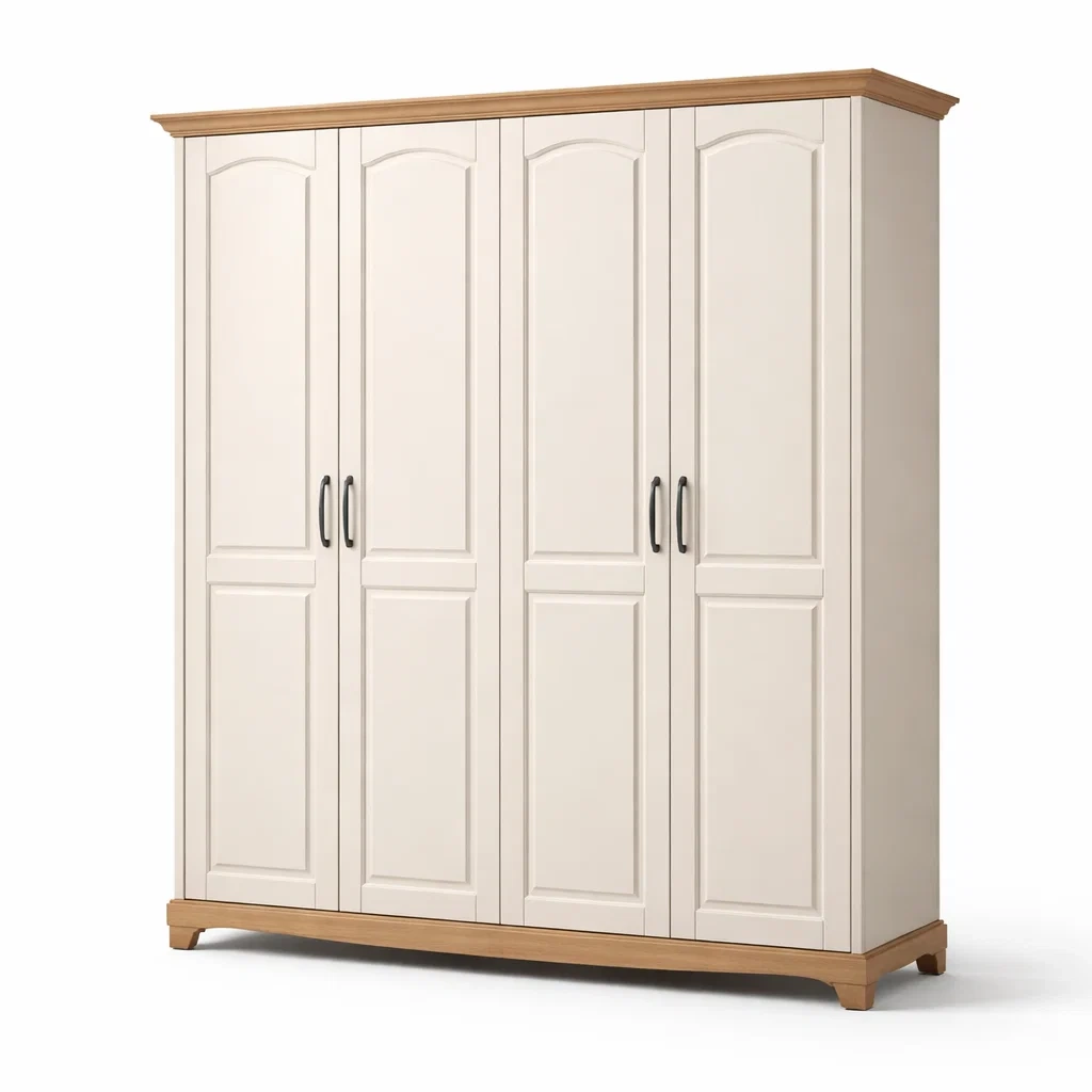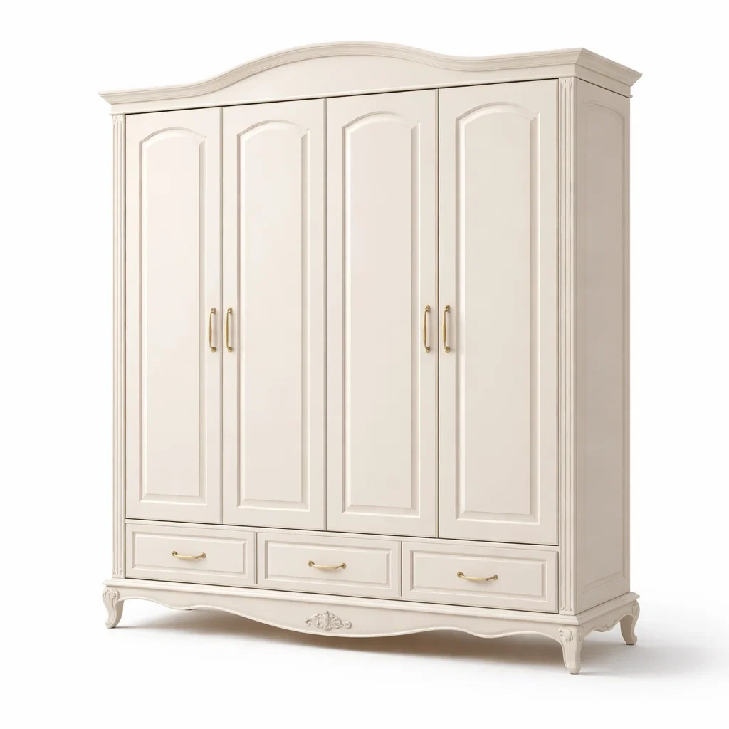 Armoire en bois avec 4 portes et 3 tiroirs crème