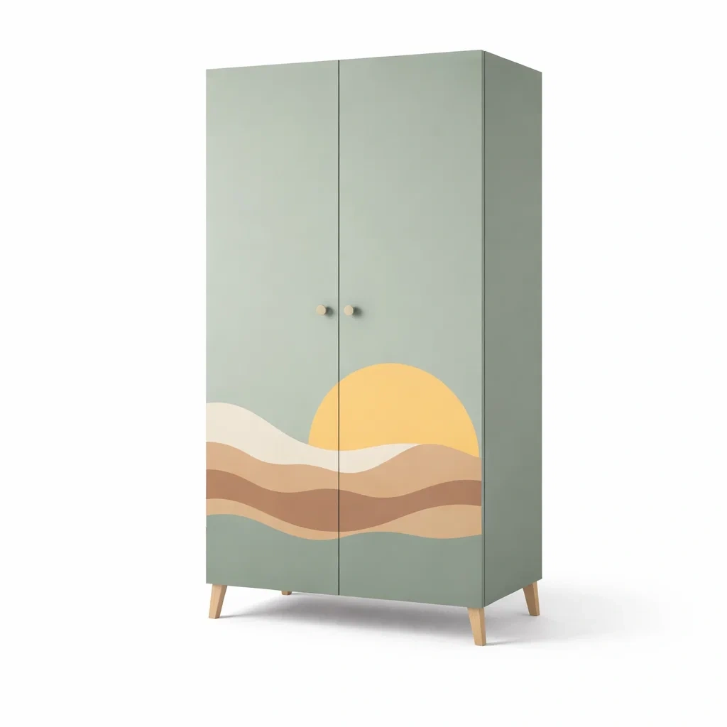 Armoire en bois avec impression paysage et 2 portes