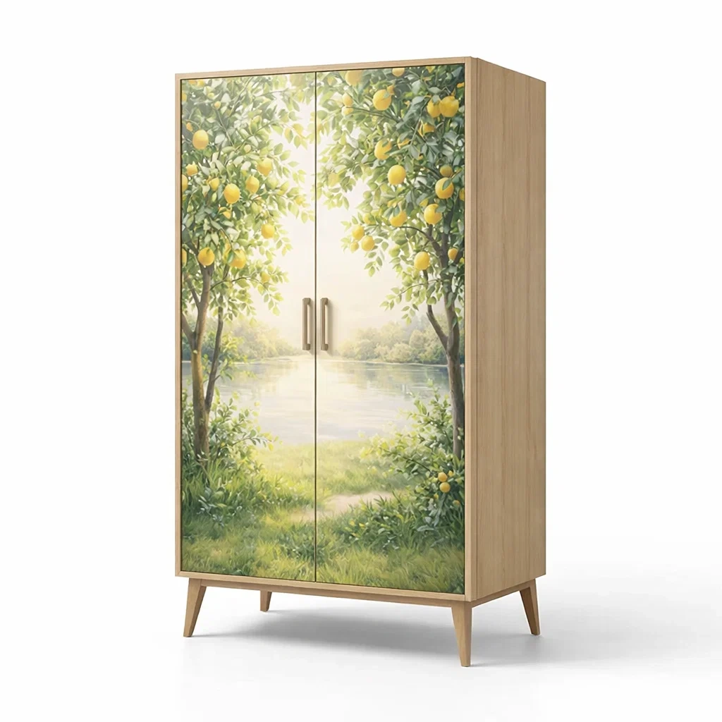 Armoire en bois avec impression de paysage et 2 portes