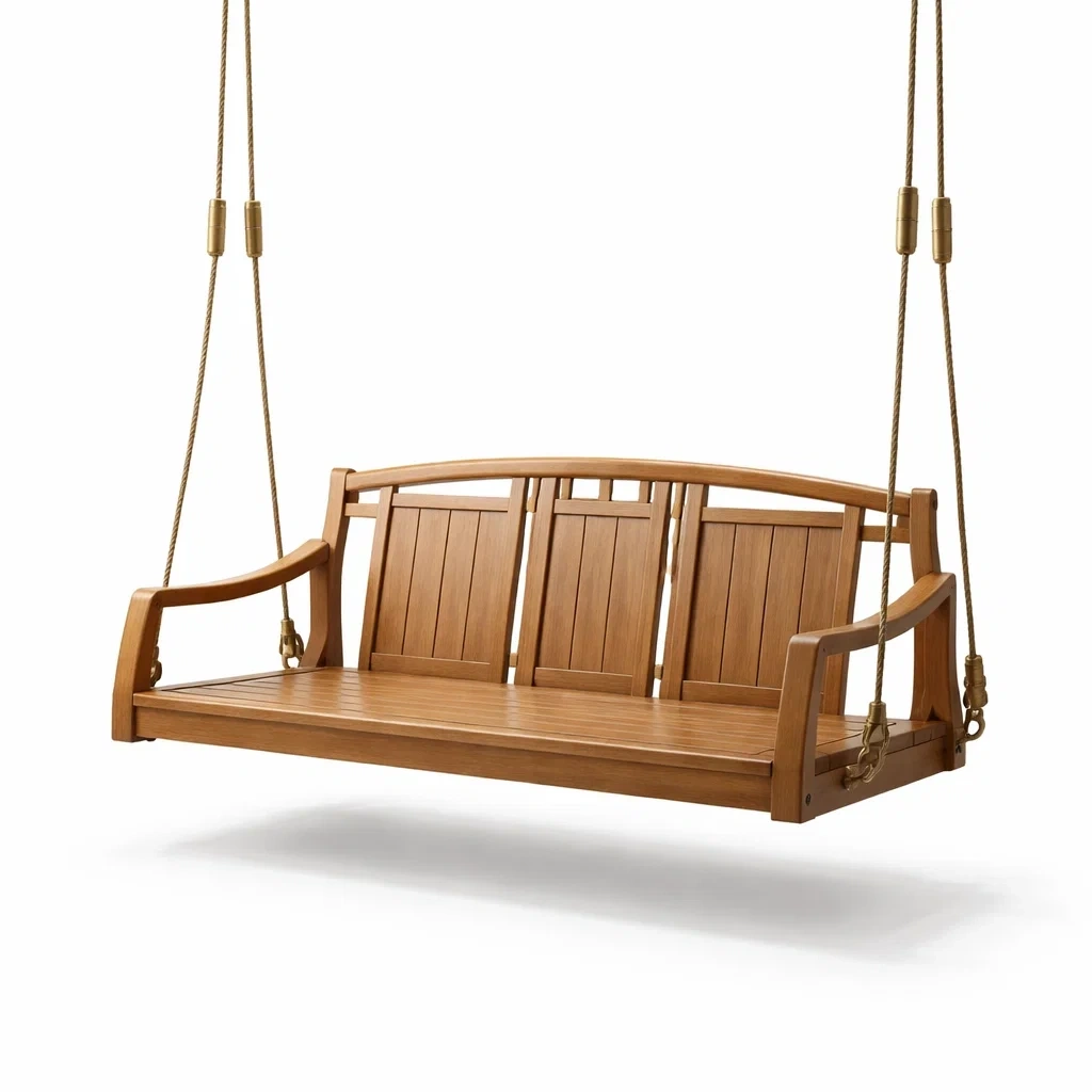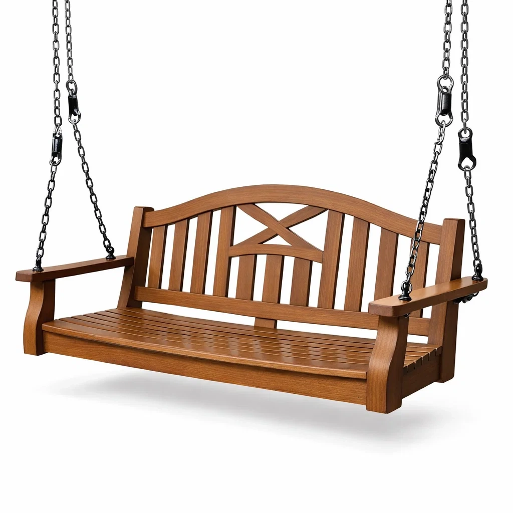 Balancelle de porche extérieure en bois d’eucalyptus avec chaînes en acier